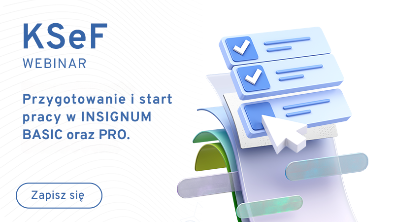 Zapraszamy na webinar, podczas którego pokażemy, jak przygotować firmę i rozpocząć pracę z KSeF w oparciu o system INSIGNUM w wariancie BASIC oraz PRO. Nasi specjaliści przejdą przez najważniejsze elementy startu: organizację procesu, konfigurację, przygotowanie użytkowników oraz praktyczne wskazówki, które pomogą wejść w temat bez chaosu na ostatnią chwilę.